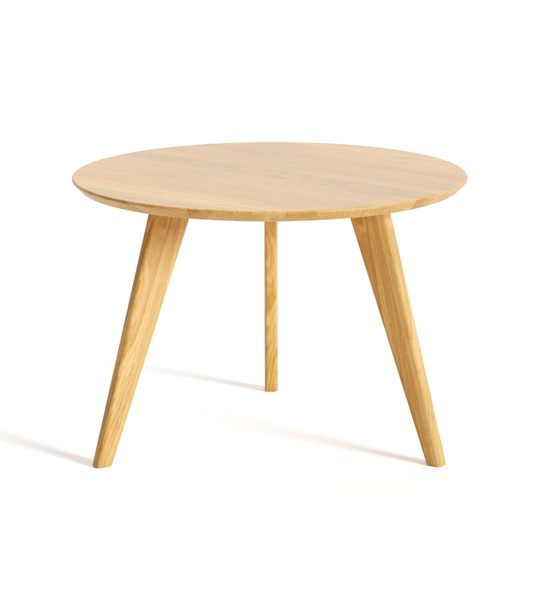 Журнальний стіл із дерева виготовлений з додатковим захисним покриттям, яке підкреслює натуральну фактурну поверхню, природний малюнок дуба та створює ефектний відтінок. Кругла форма стільниці з акуратною фаскою в поєднанні з конічними скошеними ніжками – тренд цього сезону. Завдяки лаконічному дизайну журнальний стіл дасть змогу зберегти максимум вільного простору та легкість в інтер’єрі, а також забезпечить простий догляд.