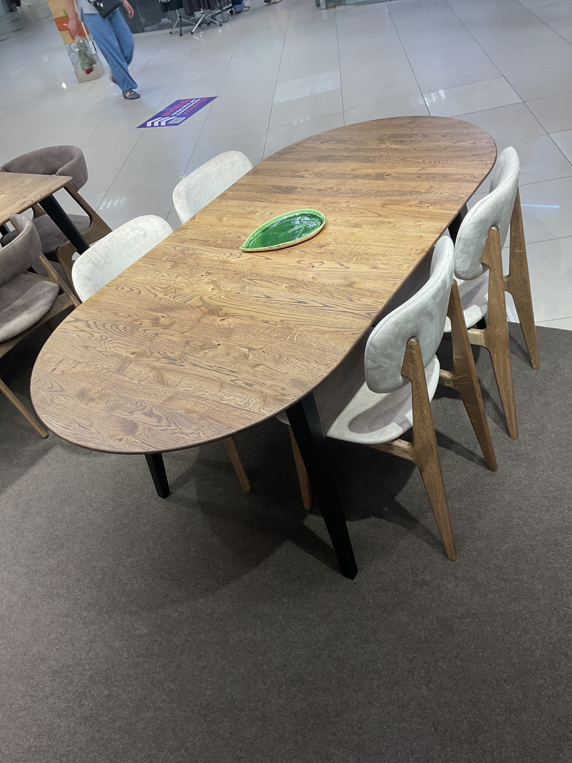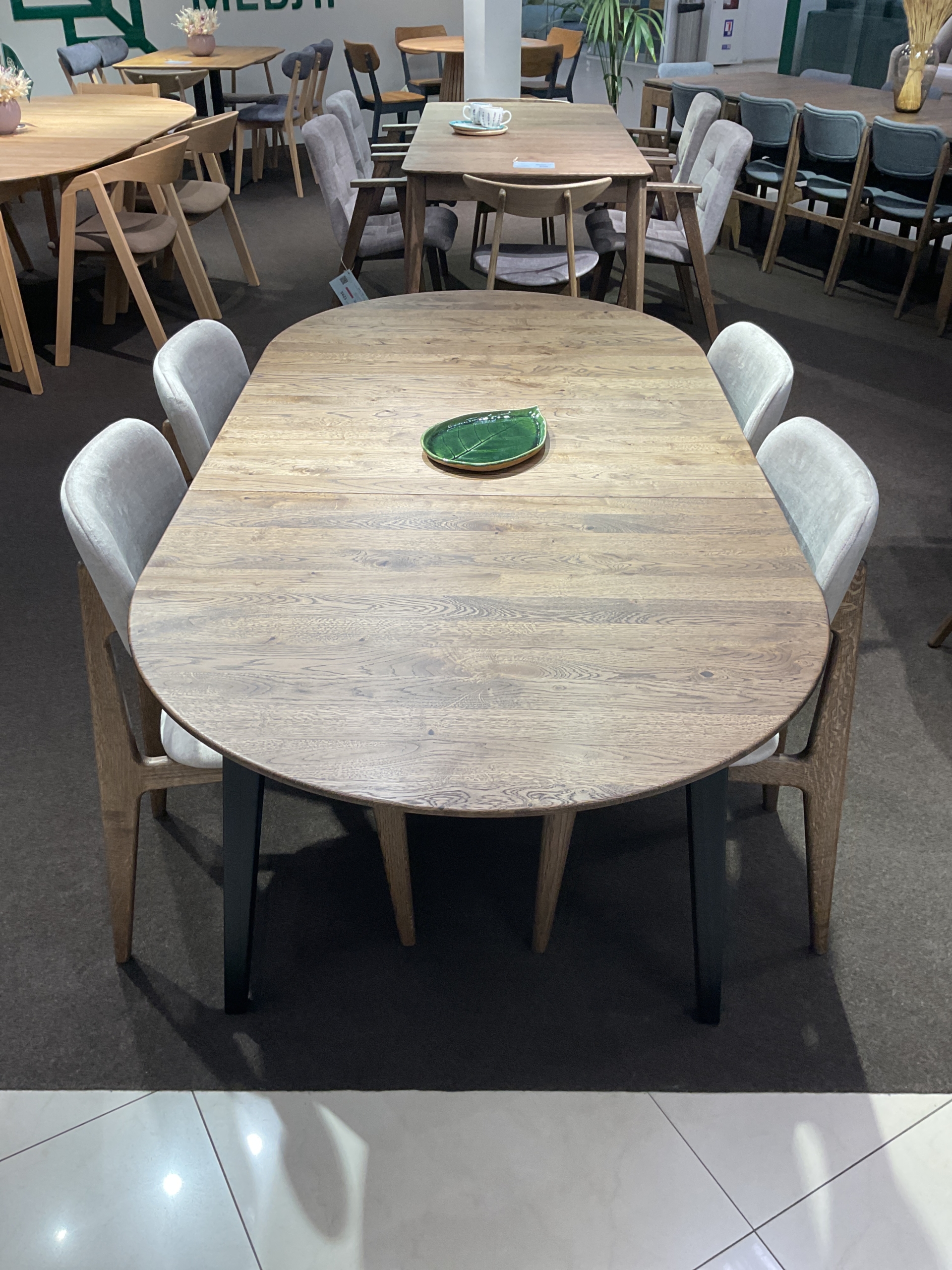 Кухонний стіл «ХОВДАЛА» – це дерев'яний виріб з міцним каркасом і хорошою функціональністю. Стіл має овальну форму, товщина стільниці 20мм. Стіл можна подовжити, має 1 вставку, яка зберігається під стільницею. в складеному стані стіл в розмірі 1400х900мм, в розкладеному стані 1800х900мм