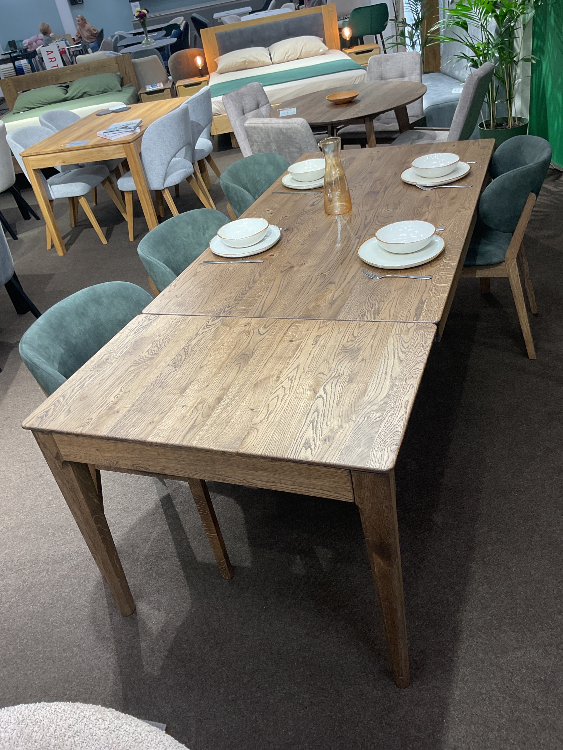 Дубовий стіл «ЛОКІ» можна поставити у вітальні та на кухні. Міцна конструкція з широкою стільницею дає змогу легко розмістити за цим столом велику компанію людей. Завдяки надійним направляючим механізмам стіл легко розкладається, а його довжина 1600х900 мм збільшується на 55 см за допомогою бічної планки. Відповідно, у розкладеному вигляді стільниця має розмір 2150х900мм. Продуманий розкладний механізм дає змогу зберігати бічну планку під стільницею.