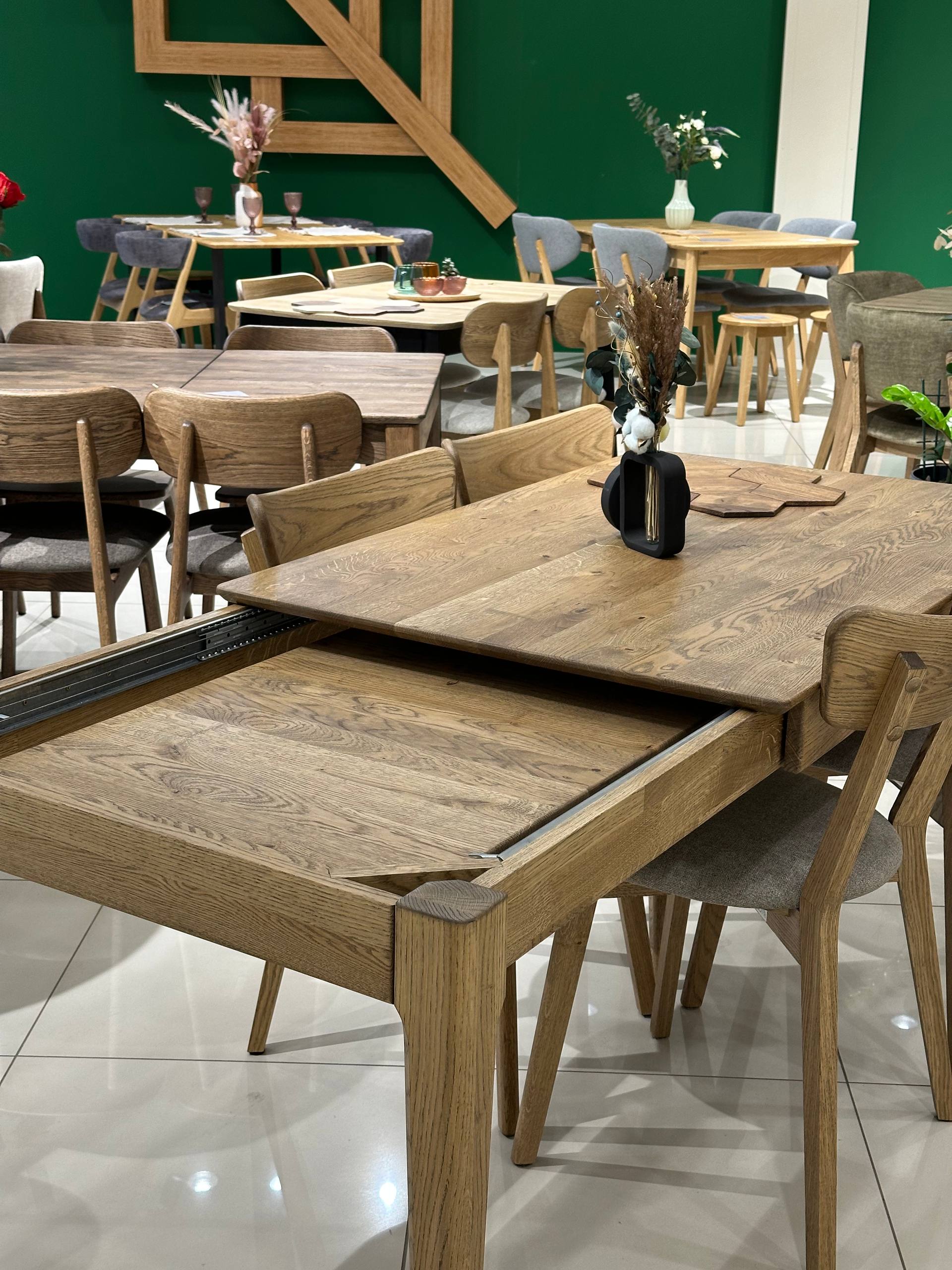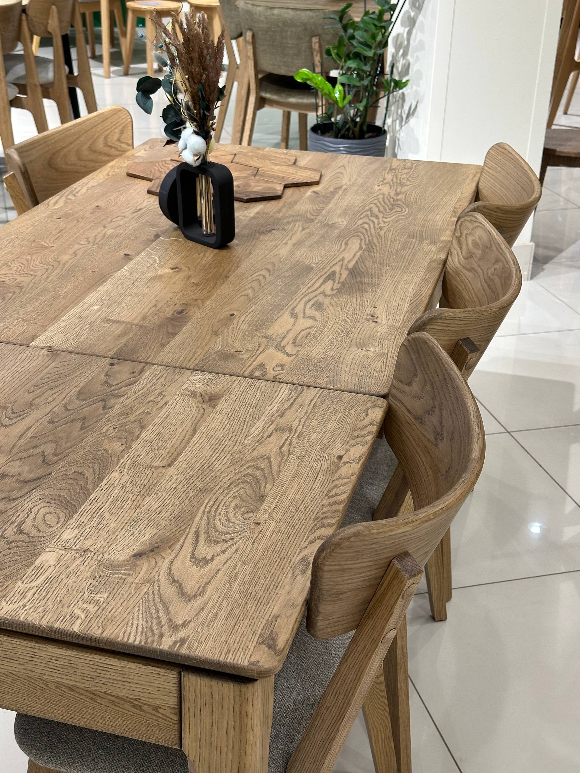 Дубовий стіл "Локі" з надійною конструкцією та витонченим дизайном стане ключовим атрибутом вашої оселі. Продуманий розкладний механізм дає змогу зберігати вставку під стільницею