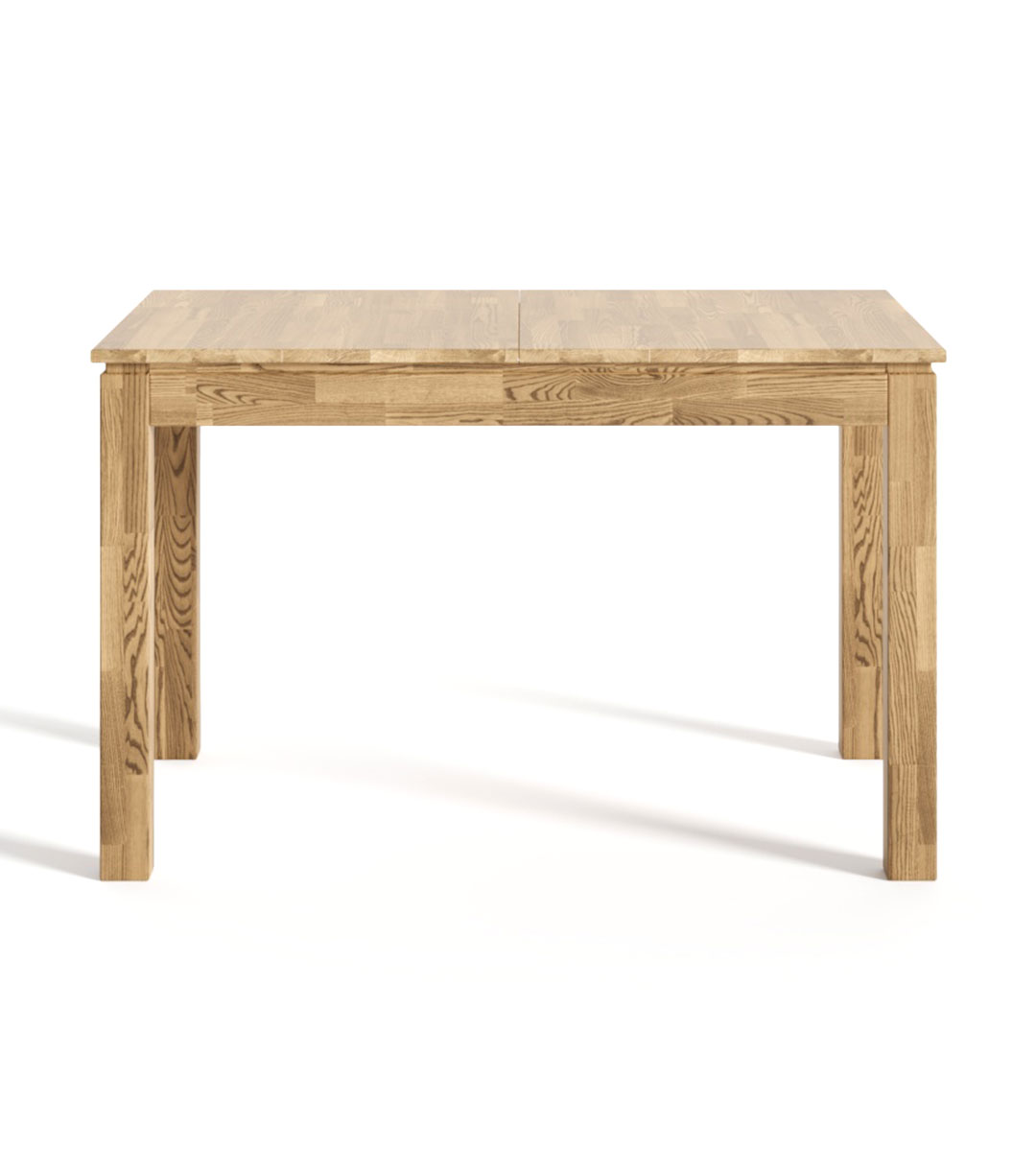 Прямокутна стільниця збільшується завдяки центральній вставці, яка у складеному вигляді зберігається під стільницею. Товщина стільниці – 20 мм. Виготовляється із щитів Select (без сучків і тріщин, але з дрібними вічками), та Rustic (з живими сучками і тріщинами, заповненими двокомпонентною меблевою шпаклівкою темно-коричневого кольору від італійського виробника Borma Wachs).