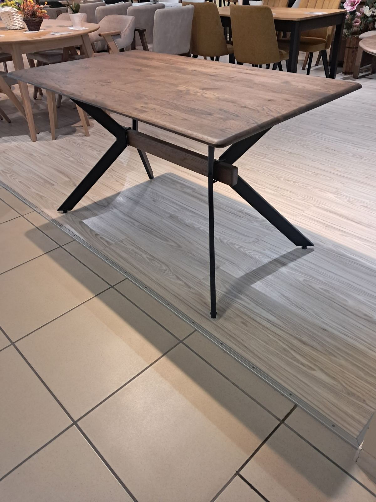 Практичний стіл «Денвер» поєдання дубової стільниці та металевої ноги. Рробить модель «Денвер», яка підходить як для кухні чи їдальні в будинку, так і для зали ресторану. Дубова стільниця милує око красивою текстурою, а різноманітна палітра кольорів дозволить підібрати найбільш підходить до вашого інтер’єру відтінок. Просочування стільниці підбирається відповідно до ваших уподобань, а також залежно від того, для якої зони ви обираєте стіл. Правильно підібране покриття дозволить вам максимально довго використовувати виріб без необхідності реставрації. Стіл із натурального дерева «Денвер» – це екологічно, красиво та безпечно для здоров’я. Металеві Х-подібні опори пофарбовані у чорний матовий колір та не відволікають увагу від стільниці. Знизу ніжки мають захисні накладки, які запобігають появі подряпин на покритті підлоги.