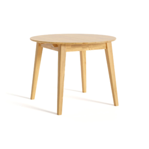 Кругла стільниця за допомогою вставки трансформується в овал. У складеному вигляді вставка не кріпиться під стільницею, а зберігається окремо. Товщина стільниці – 20 мм, по краю виконана радіусна фаска. До замовлення доступні три розміри: